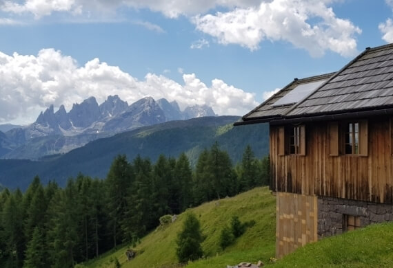 Ein Spaziergang in den Bergen im ersten Morgenlicht, das Läuten einer Kuhglocke, die Sonne, die sich über den Bäumen erhebt, die uns wie in einer Umarmung empfangen, ein gedeckter Tisch mit den Köstlichkeiten des Fassatals: So beginnt man den Tag bei Olympic auf die beste Weise!