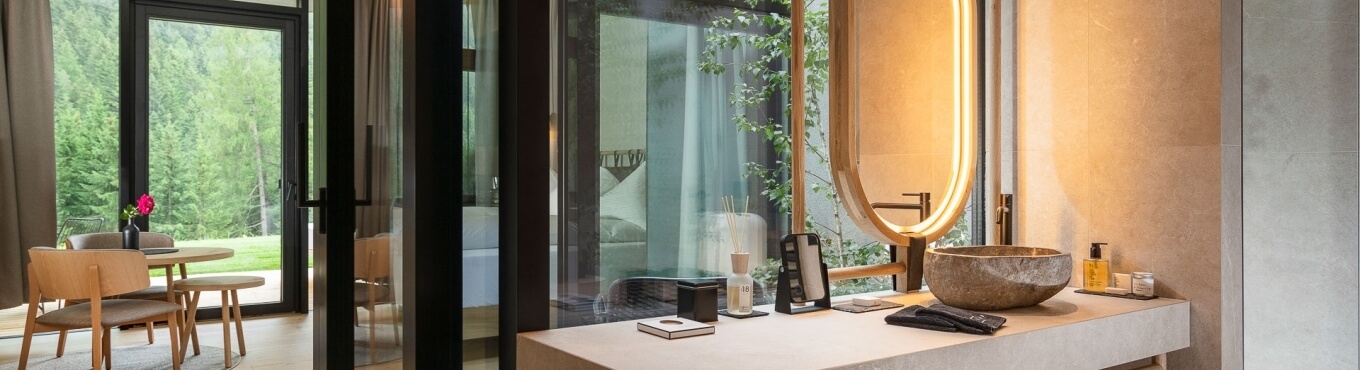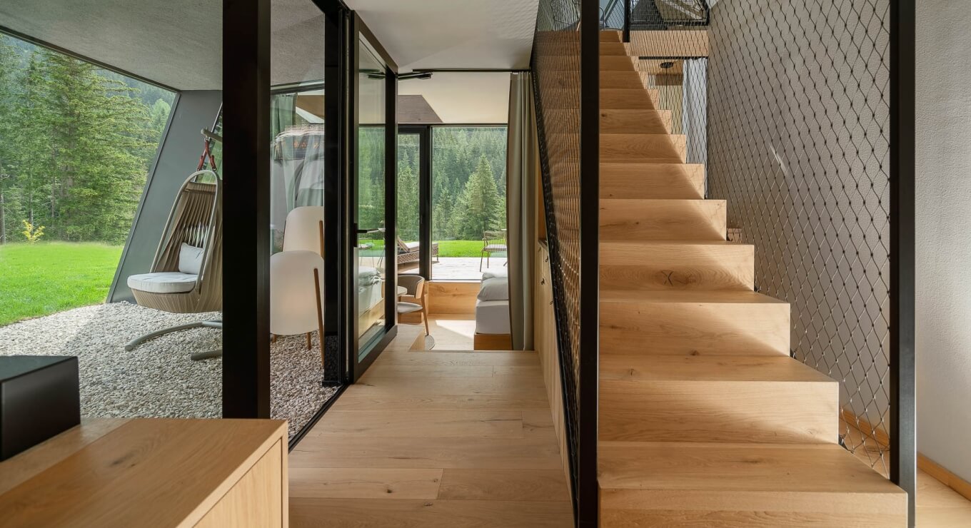 Träumen Sie auf einem runden Bett. Lassen Sie den Blick vom Panoramabalkon in die Ferne schweifen und sich von Stille der verschneiten Wälder berauschen. Im innovativen und außergewöhnlichen Natural Spa Chalet “Te Jaga” verschmelzen Licht, Natur und Design zu einem exklusiven Wohlfühlerlebnis.