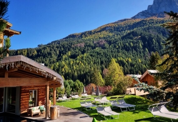 Im Garten des Wellness-Hotels Olympic, umgeben von der Natur des Fassatals und den Gipfeln der Dolomiten, einem Ort der Ruhe und Entspannung unter freiem Himmel, können Sie Ihre Batterien wieder aufladen.