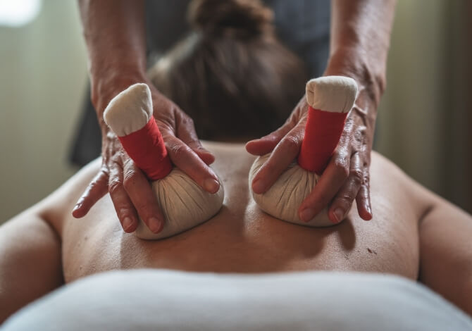 Die Massage wird mit warmen Bergkräuterpads durchgeführt und ist eine hervorragende Entspannung für die Muskeln.