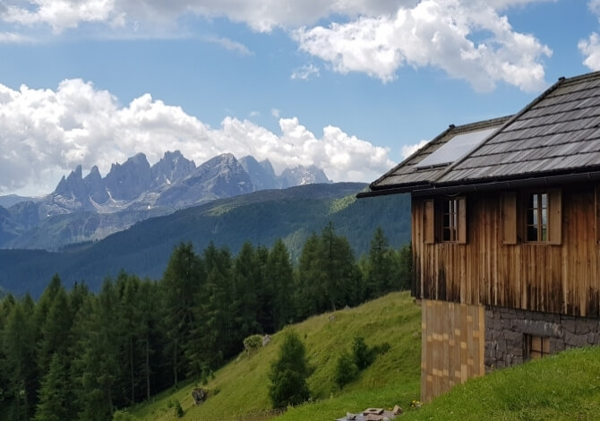 Our Manuela prepares everything down to the tiniest detail by going up to the hut the night before. In the morning, when the sun rises, she lights the fire, fetches water from the stream and freshly milked milk, sets the table with cold meats and cheeses of all kinds, fragrant malga butter, fresh bread, jams and the inevitable potatoes, and awaits the arrival of the guests.